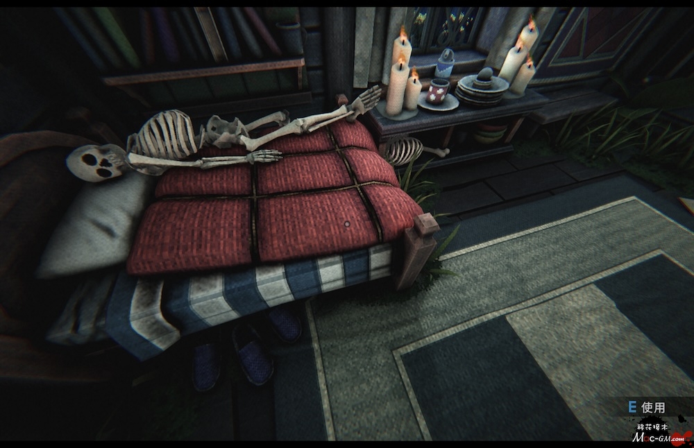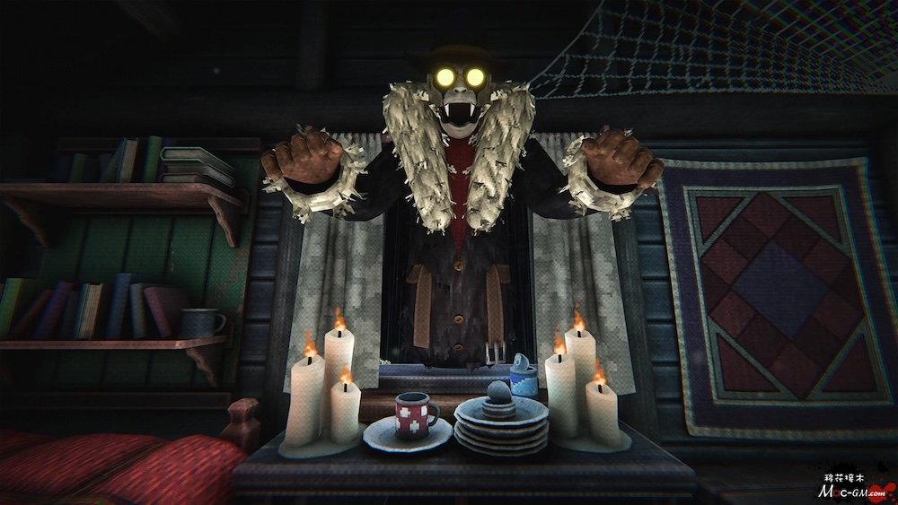 按照屋主的要求玩电脑游戏,这些游戏包含类似RPG的环节、纸牌游戏等,且游戏中的操作和结果会与现实中的小屋产生关联,如拉动游戏中的摇杆会触发小屋中的机关发射箭矢等。