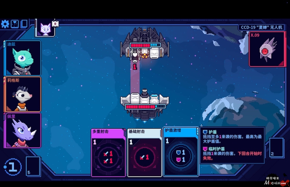 通过打出卡牌向你的船员下达指令:你会选择提升护盾来保护你的飞船,闪避来避免遭受导弹和火炮的直接伤害,还是先发制人地攻击来使敌人的武器失效?灵活机动,保持领先,避免迫在眉睫的灾难,并抵达钴芯!