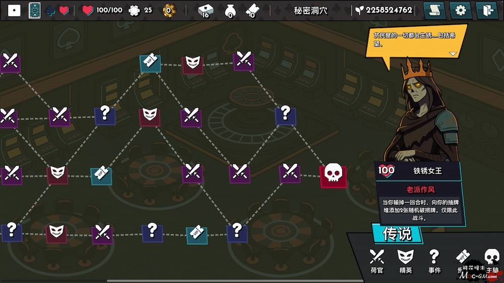 踏入一个不断变化的赌场迷宫。每个地图都是程序生成的,充满了秘密事件、使用作弊牌组的发牌员以及难以预测的挑战。每一局游戏都截然不同,确保了无尽的重玩性和战略深度。
