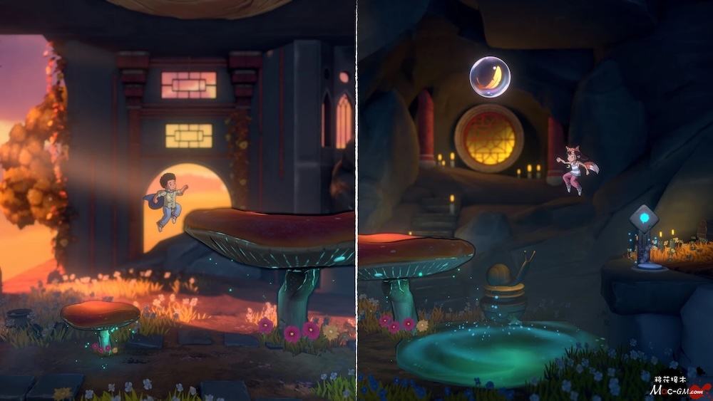《迷失双子2》适合所有年龄段玩家,强调探索与思考,无冲突、无威胁。游戏没有倒计时、没有敌人、没有死亡,甚至没有文字对白,只需沉浸在这个如诗如画的世界中,享受安静却充满成就感的解谜之旅。