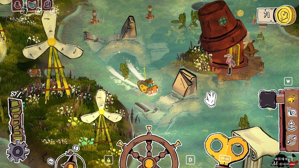 给钥匙上弦并掌舵 — 屏幕上的界面让你可以真实感受到船的移动。