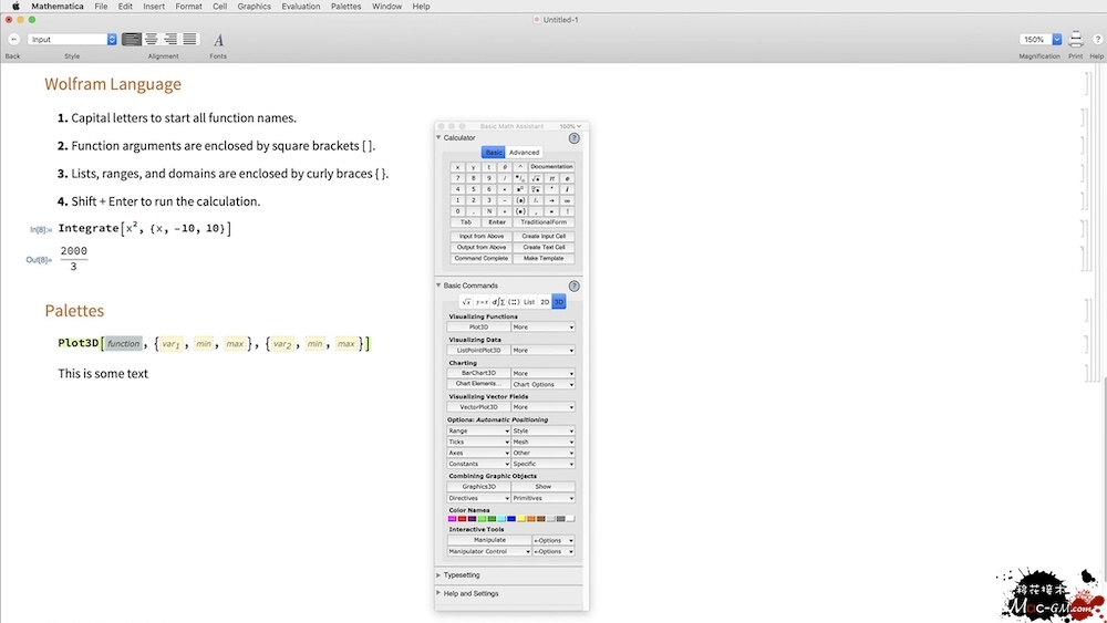 文件和代码:Mathematica使用Wolfram笔记本界面,它允许您组织在富文档中执行的所有操作,包括文本,可运行代码,动态图形,用户界面等。