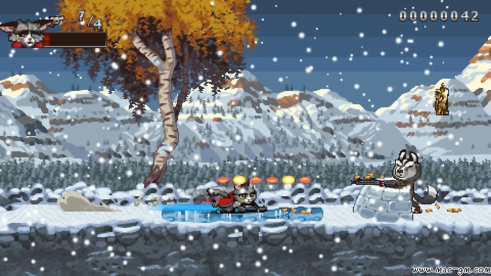 来见见超级猫猫哥,他可不是一般的汤姆猫!他和他疯狂的搭档武器女孩一起,在试图挫败邪恶创造者的阴暗计划时,不闻其声空留狼藉。他全副武装,并配备了最时髦的滑板鞋技术。他必须奔跑、跳跃、冲刺、攀爬、射击,并在成群的拟人化狗狗兵团中杀出一条血路。如过你喜欢80年代和90年代、喜欢16位平台游戏、喜欢郎朗上口的曲调、喜欢“强大的”Boss战、喜欢猫咪,讨厌狗狗(开玩笑啦,我们超爱狗勾的)。那么你就会乐在其中。