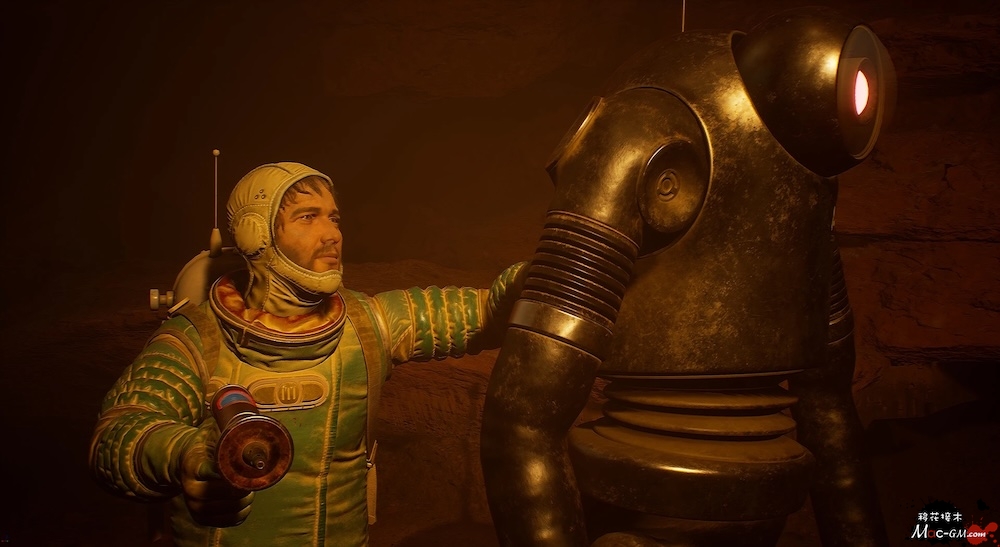 这一背景在游戏里得到了很直接的反映,那就是尽管故事发生在人类已经可以进行星际旅行的遥远未来,但所有机械器物的造型与功能却又都保留着上个世纪 5、60 年代的风格,一个典型例子就是侦查机器人拍摄的照片只能通过半透明幻灯片的形式保存下来(现在年纪小一点的读者可能都没见过实体幻灯片),玩家控制的主人公需要打开机器人、取出一沓幻灯片一张张查看,以此来搜集线索。