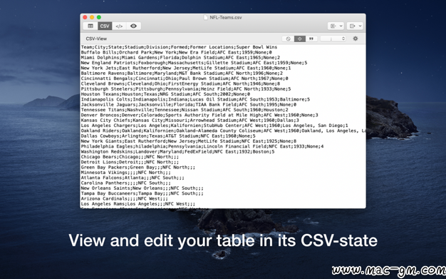 MarkupTable还可以充当CSV编辑器,因此可以读取和保存CSV文件。读取CSV文件时,MarkupTable可以自动检测CSV文件中使用的字段分隔符。