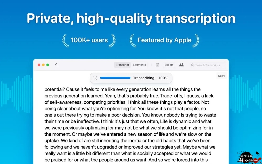Whisper Transcription 离线语音转录文字工具 Mac版 苹果电脑 Mac软件