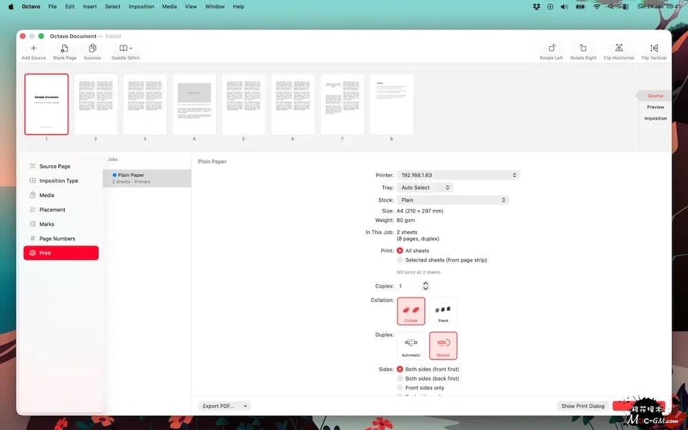 Octavo 是一款专为 macOS 设计的专业拼版与小册子打印工具,一键自动计算页码顺序、添加折页 / 装订标记,解决手动排版痛点,让 PDF 直接输出可折叠、装订的印刷文件。
