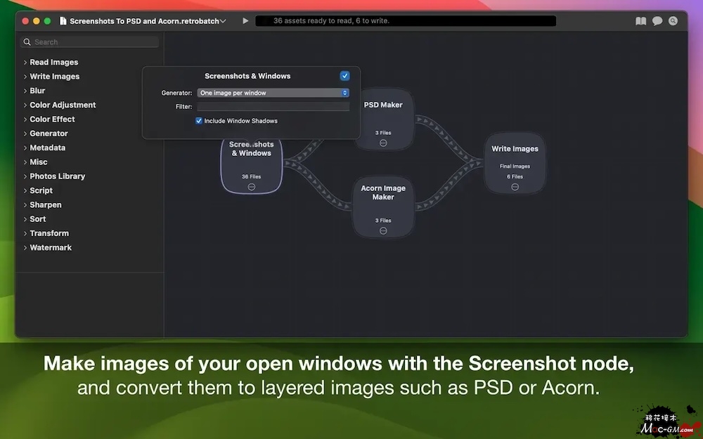创建工作流以捕获Mac上的所有打开窗口,并将其作为单独的PNG或多层PSD写出。