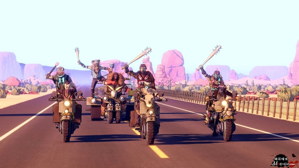 你将在途中穿越虚构历史的美国,在具有标志性的地点停留,接受意想不到的任务,结识各种各样的人物,招募新队员,躲避(或对抗)追杀你的人。你会在高速公路上欣赏到优美的风景,这些风景呈现出了以彩色漫画小说为灵感的艺术风格,使得惊艳的2D插图展现出了3D效果。