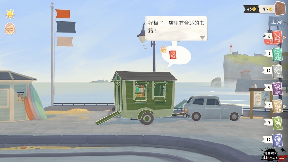 在悠闲慢节奏的海边小镇,时间会跟着潮汐一起慢下来。打理你的二手书店,用绿植、烛台等装饰物布置书店内外,你的装饰不只是美化空间,更会悄悄影响书籍的销量,甚至带来新的玩法。