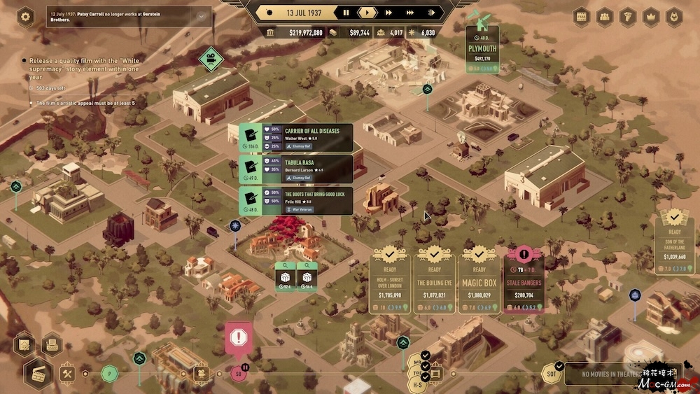 你是制片厂的老大,而《好莱坞动物》为你备好了与这一身份相符的各类挑战。你的时间非常宝贵,所以别把精力浪费在挑选墙纸或打理花坛上。你要思考的是用什么样的角色和主题才能抓住观众,该投资哪些有可能在行业掀起巨浪的新技术。对了,你还得屈尊去和那个年轻巨星聊聊,说服他签长期合同——虽说这个心高气傲的混球曾赌咒发誓过再不同你合作。