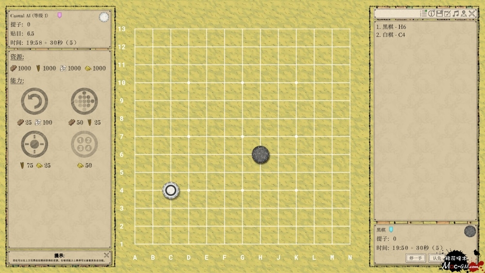 在战役中,AI会自动调整等级和让子数,以匹配玩家的水平