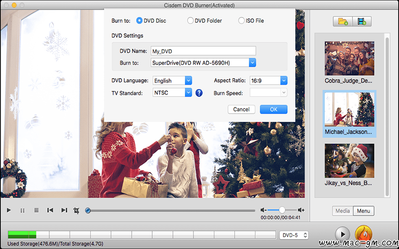 Cisdem DVDBurner是伟大的DVD刻录软件,具有更多的功能,但掌握的步骤比iDVD更少。它可以将任何视频刻录到带有字幕/菜单和背景音乐的DVD上,还提供了一系列DVD菜单模板以适应您的所有场合。通过其编辑功能,您可以裁剪,旋转,修剪,删除信箱,并添加特殊效果或水印,然后轻松刻录高质量的个人DVD。