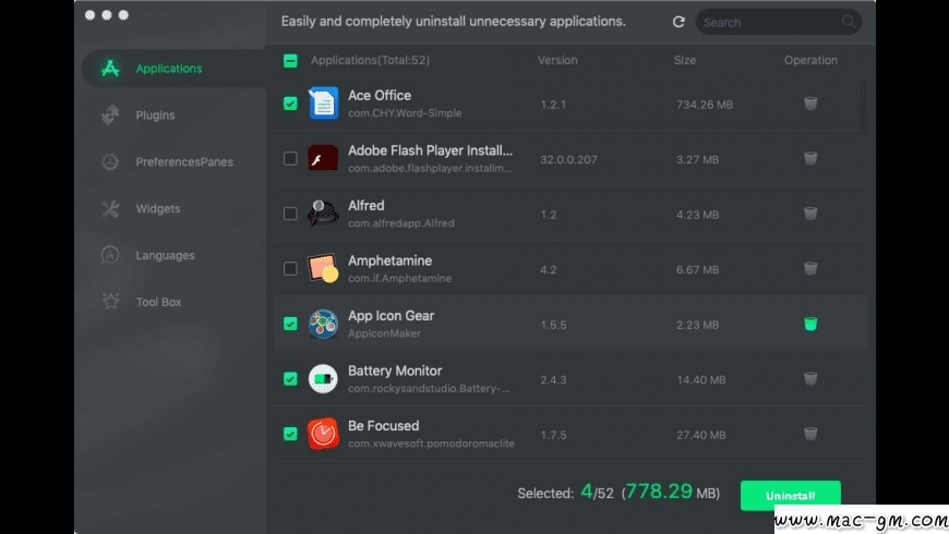 支持卸载从Mac App Store或其他网站下载的应用程序