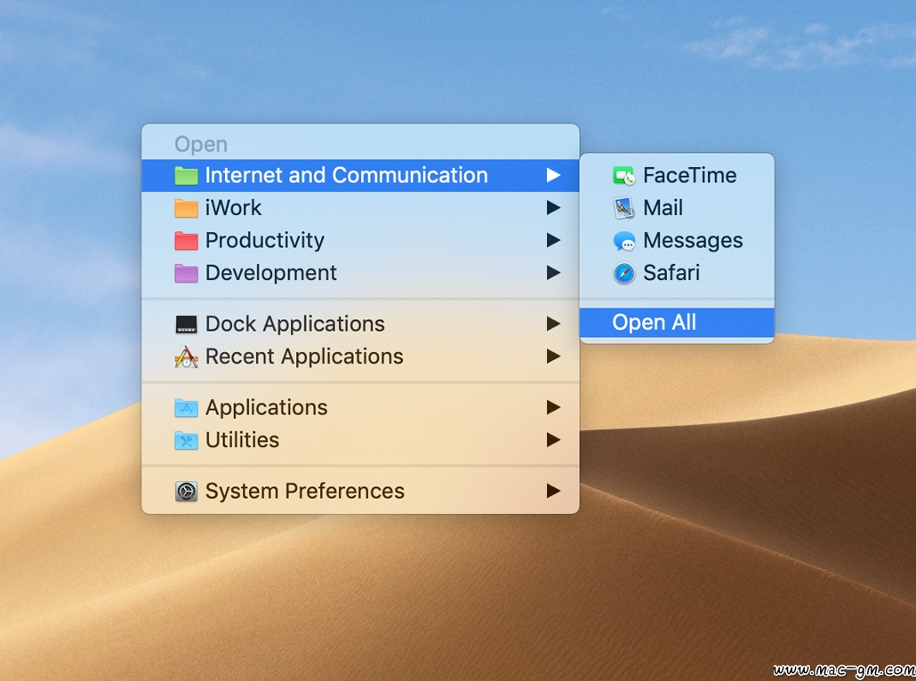 特殊菜单提供非常有趣的附加功能,因为它能够启动和/或关闭Mac OS Classic,退出和/或重启Finder和Dock,切换用户,保持Mac,重启和/或关闭它。但我们也可以打开最近的应用程序,Dock或文件夹中的所有应用程序,最好是面板。