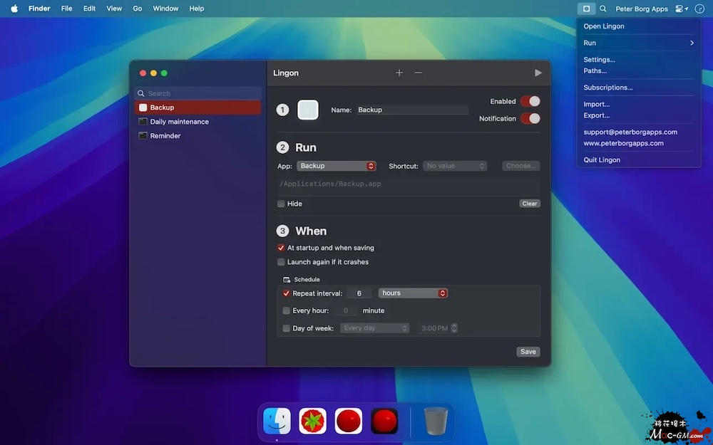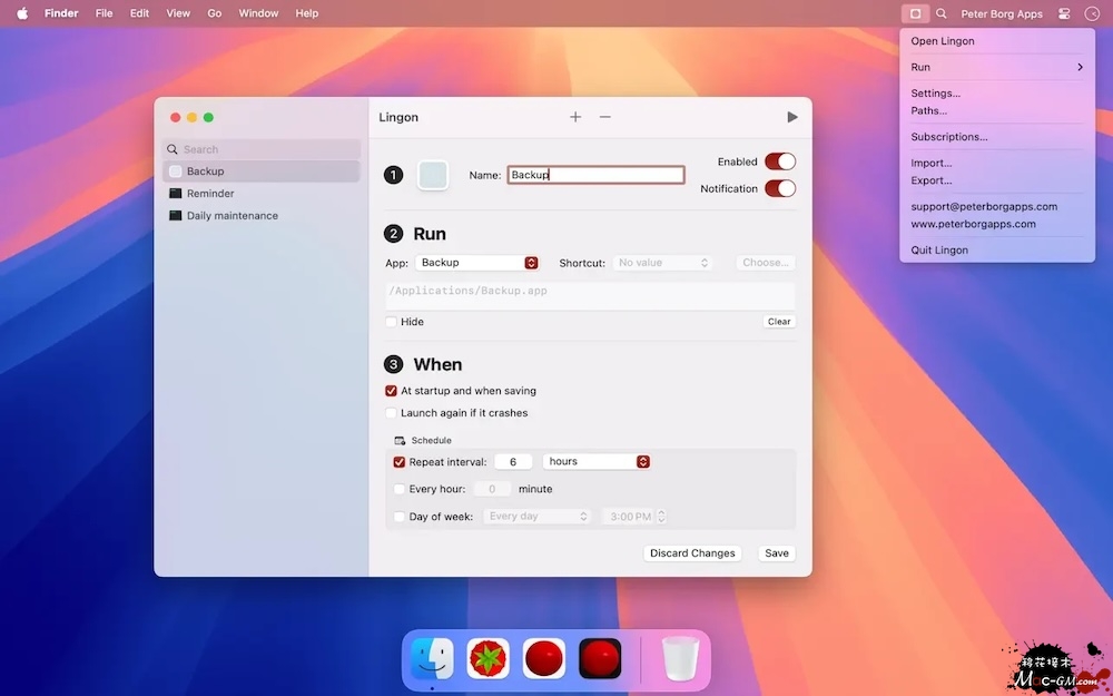 无论你想启动应用、运行脚本、快捷方式还是命令,Lingon 都能满足你的需求。你可以设置它在特定时间或定期运行,它甚至可以确保应用崩溃后自动重启。