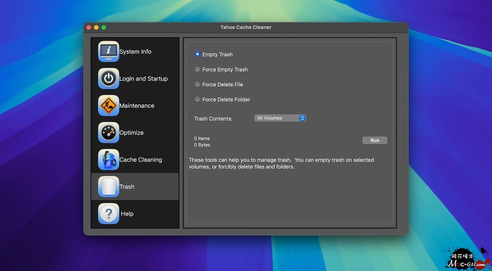 Tahoe Cache Cleaner 可以通过调整网络和文件缓存设置、启用 RAM 磁盘以及清理各种缓存和过期数据来提升系统性能。TCC 还包含用于优化文件和内存的工具。 TCC 可以通过删除语言本地化文件和精简通用二进制文件来回收浪费的磁盘空间。