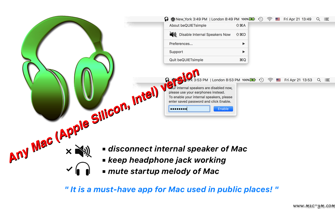 -无论何时在公共场所都执行该应用程序,它甚至可以使Mac的启动音调静音!
