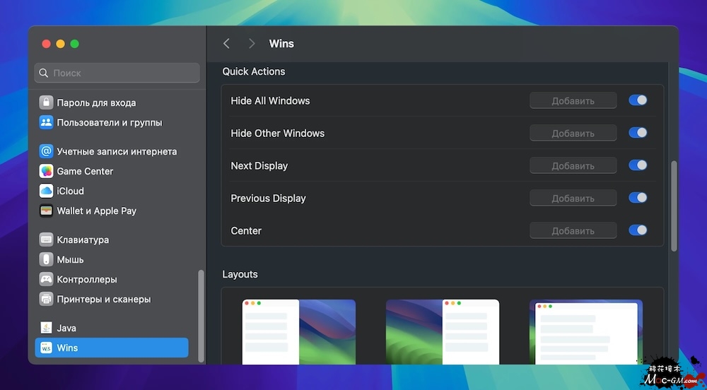 Wins没有独立窗口,不占用Menu Bar、不占用Dock栏,设置面板集成在系统偏好设置中,提供更加纯净的用户体验。